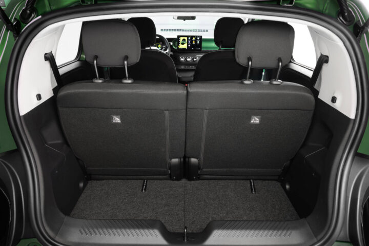 Trotz des Retro-Mantels ist das Auto ein reiner Stromer und kommt als praktischer Fünftürer auf den Markt. Im Innenraum bleibt der Twingo seiner Tradition treu: Er bietet trotz kompakter Außenmaße (ca. 3,79 Meter Länge) ein überraschend modulares Platzangebot. Die Rücksitze sind verschiebbar und umklappbar, wodurch der Kofferraum von 305 auf über 1.000 Liter erweitert werden kann.